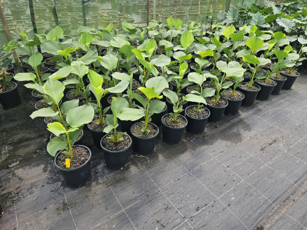 Calathea lutea, commonly known as the Cuban Cigar Plant or Havana Cigar, is a tall-growing evergreen tropical plant known for its dramatic foliage and screening potential. It provides a lush, vertical presence in gardens and landscapes. Often used as an alternative to Heliconias, it offers a softer, leaf-focused look while still delivering strong tropical impact.