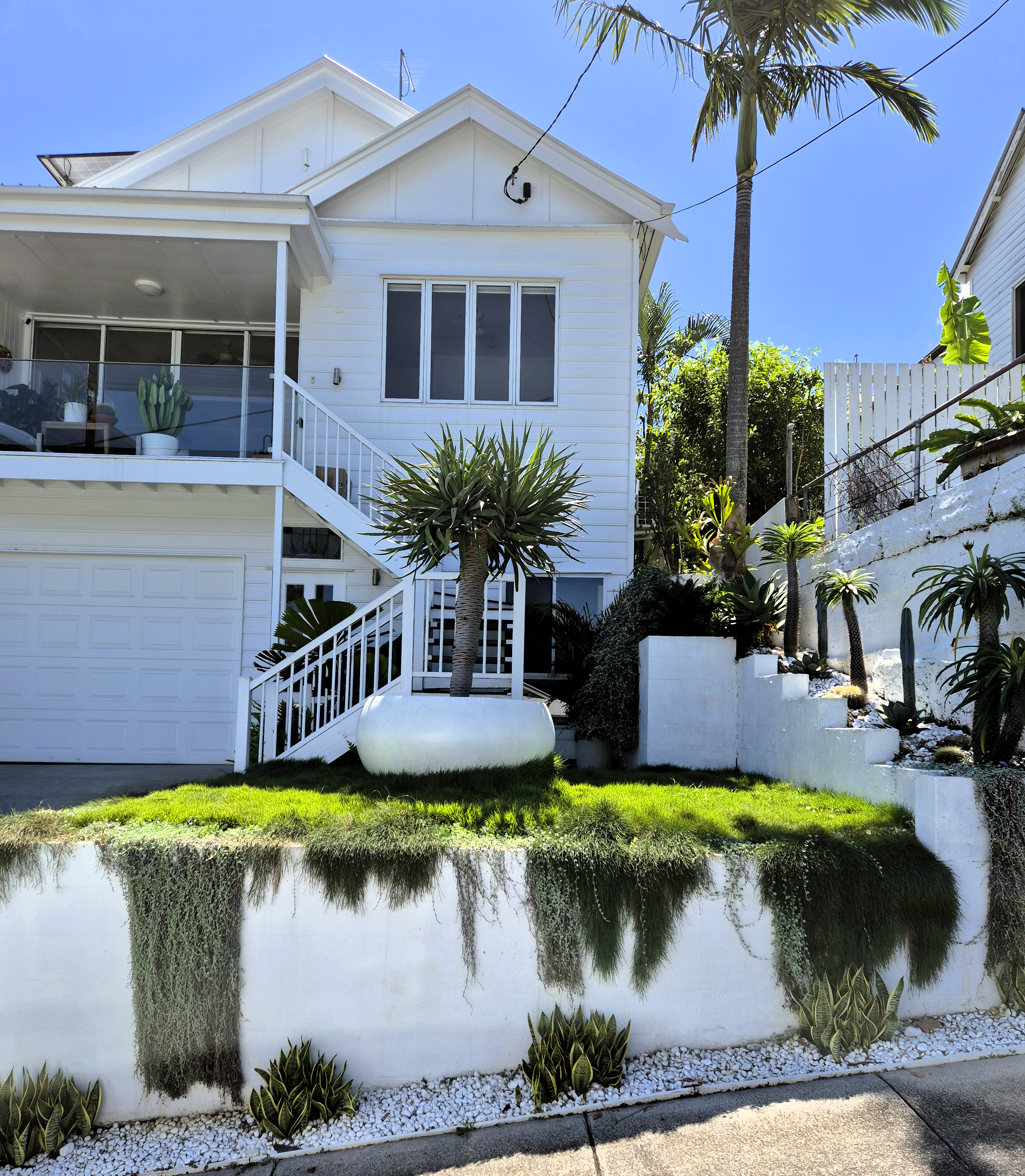 Near the home's entrance, are some topiary standards like Acmena smithii (Allyn Magic) which creates a unique feature.