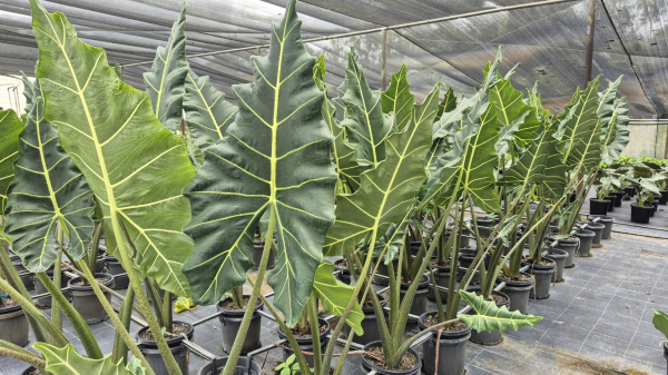 Alocasia Sarian is a tropical foliage plant prized for its striking appearance, featuring bold patterned stems and lush, architectural leaves. Its dramatic form makes it a standout choice for shaded gardens and indoor plant collections. Ideal for part shade, tropical plant is perfect for shaded courtyards, or as a dramatic feature in mass plantings.