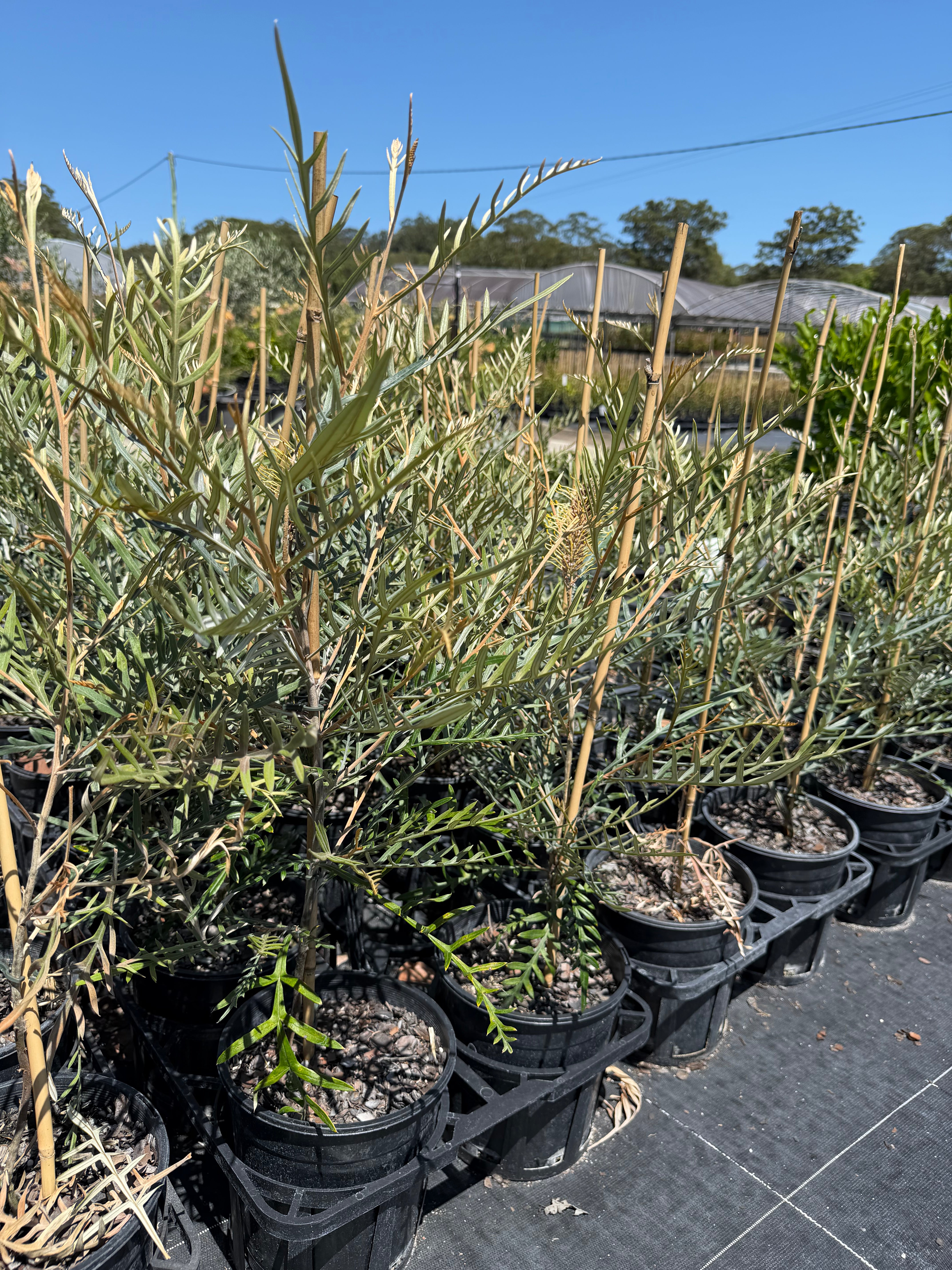 An evergreen Australian native cultivar known for its distinctive caramel-yellow flowers. These long-lasting, nectar-rich blooms attract birds and other pollinators.