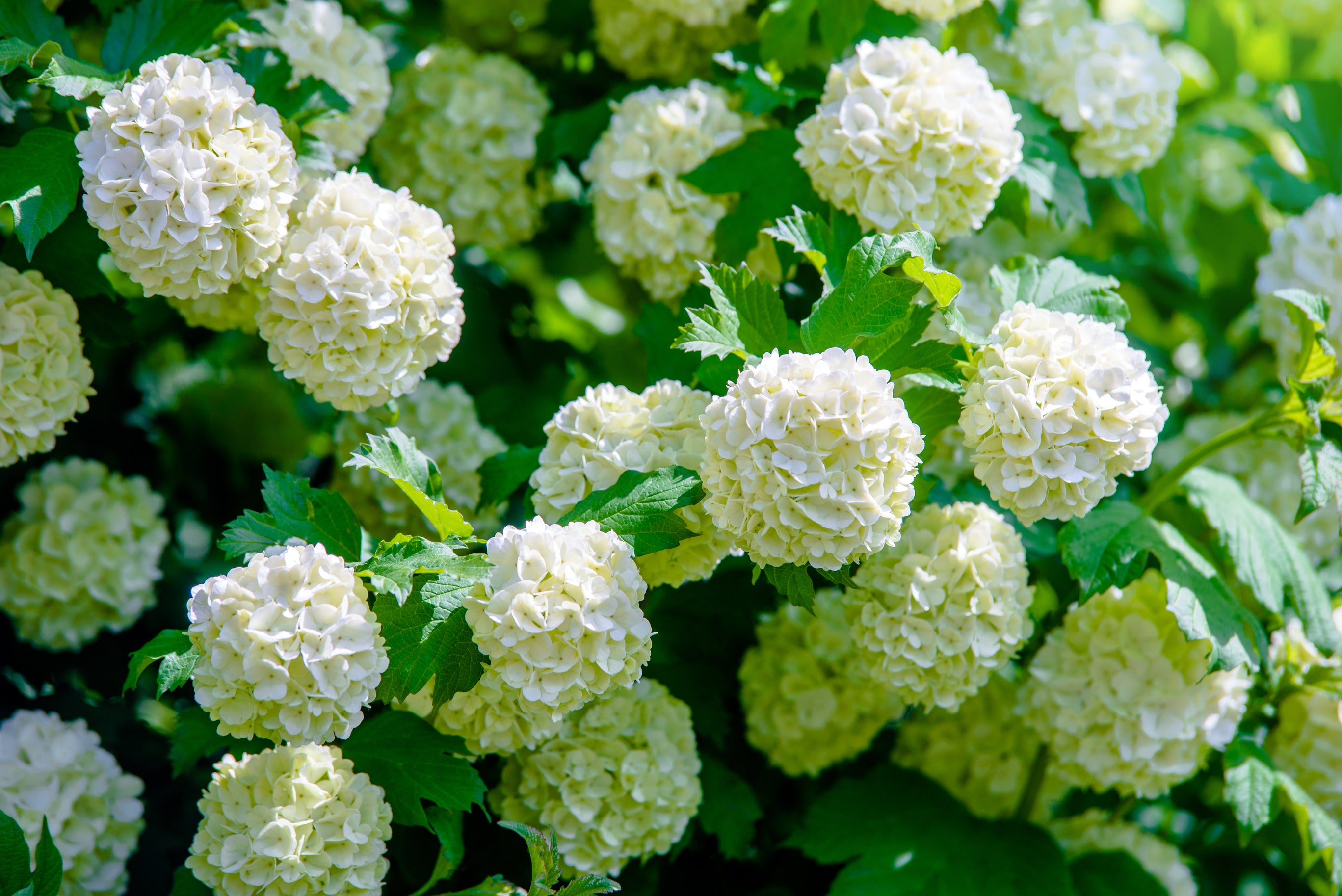 Features rounded white blooms that transition from white to green, set against rich dark green foliage. Grows in a compact, bushy form, perfect for mixed plantings or as a statement feature.