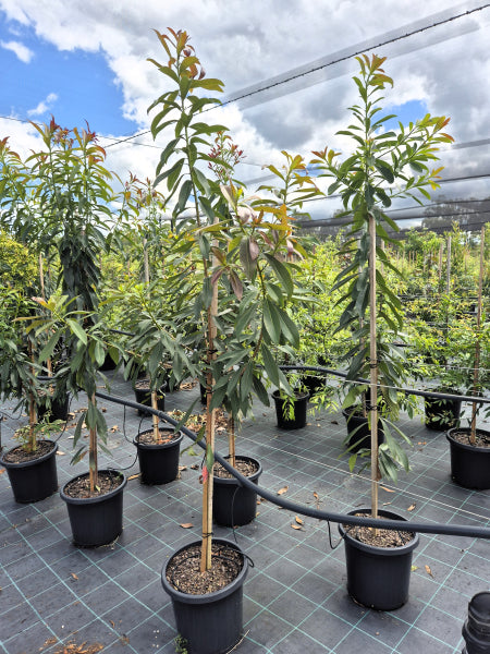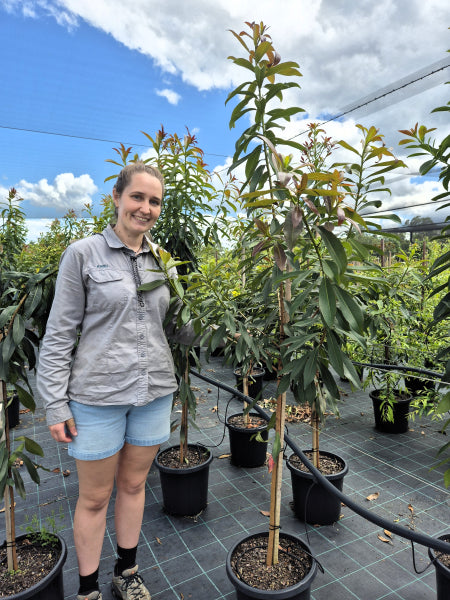 Australian Native rainforest tree, hardy evergreen, low maintenance, attracts birds and other pollinators.